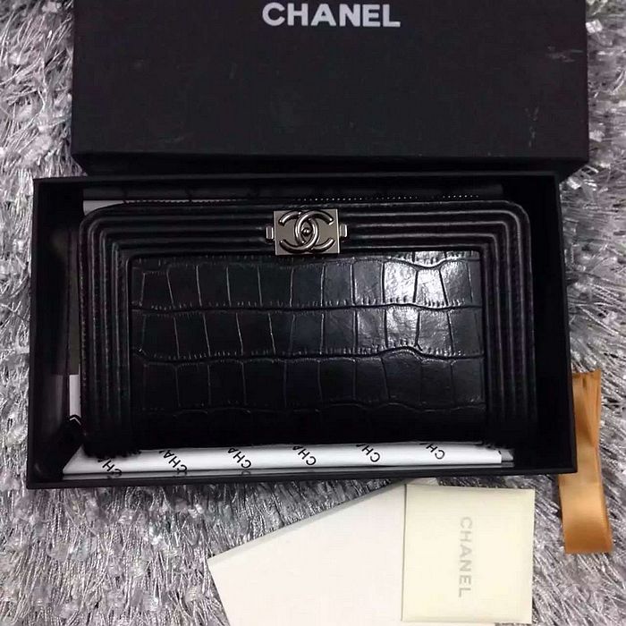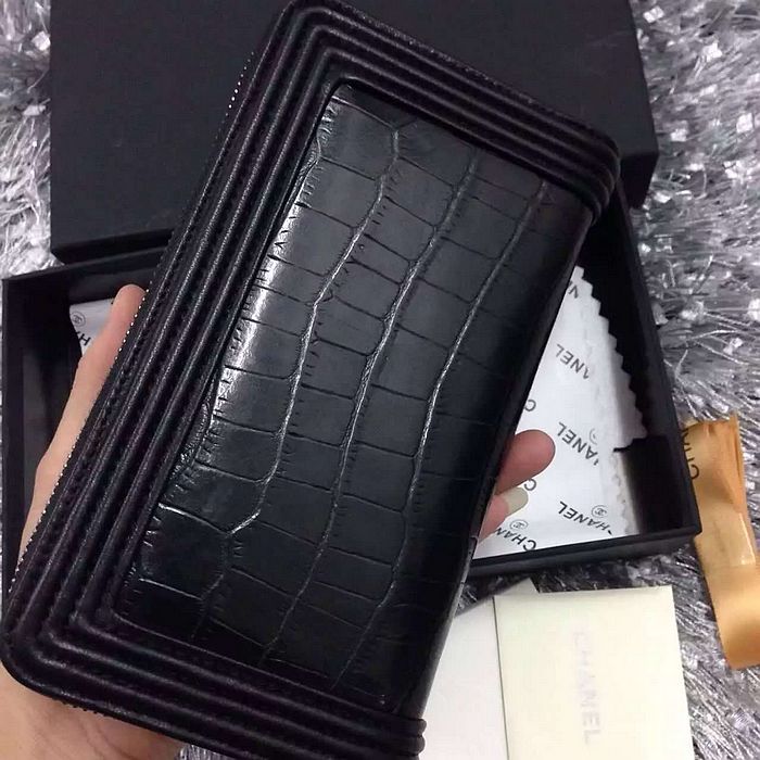 2016 Le Chanel Matelasse Zip Around Wallet crocodile Leather A80401 Black