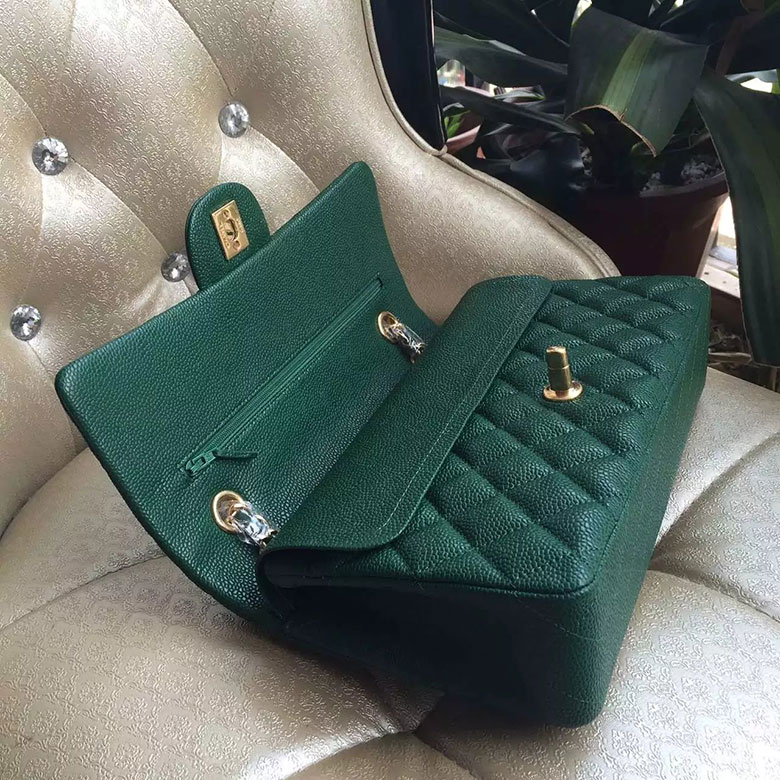 2016 New Chanel Classic Flap Bag 1112 Green Original leather Gold