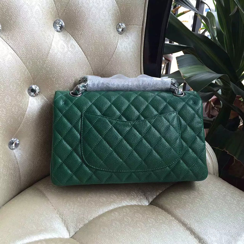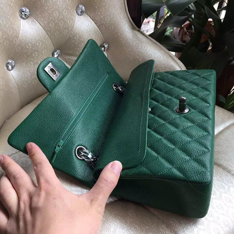 2016 New Chanel Classic Flap Bag 1112 Green Original leather Silver