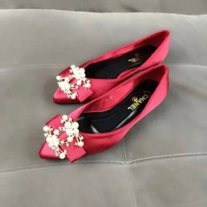 2016 new arrivals Flats shoes in Silk With Rhinestone buckle