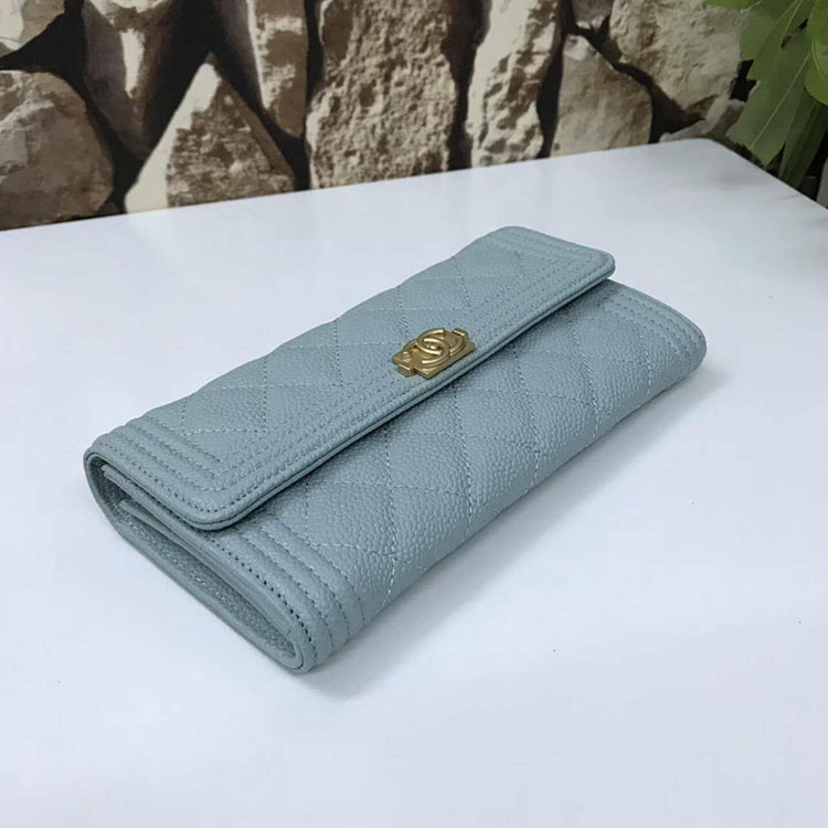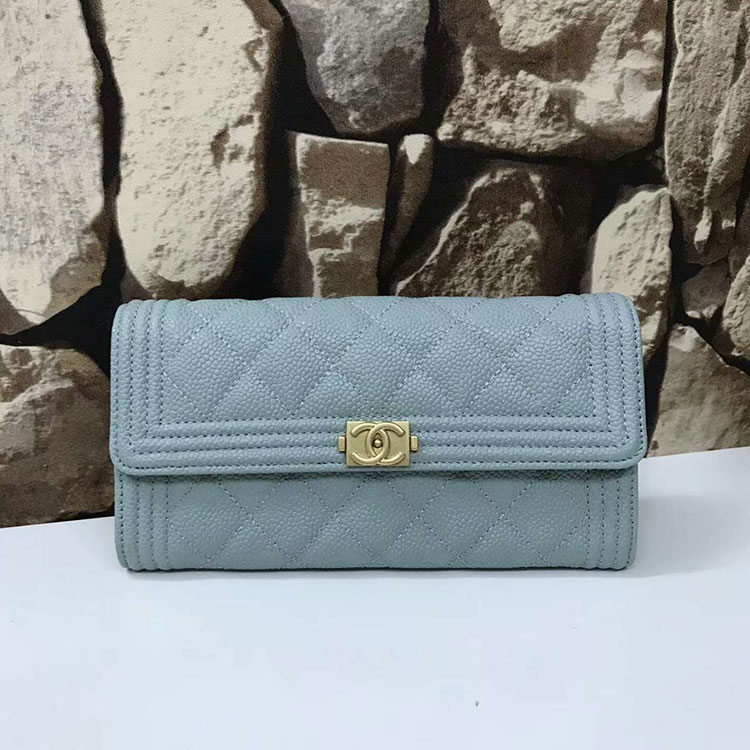 2017 Boy Chanel Embroidery Bi-Fold Wallet Original Caviar Leather A80286