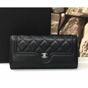 2017 Boy Chanel Embroidery Bi-Fold Wallet Original Sheepskin Leather A84235 Black