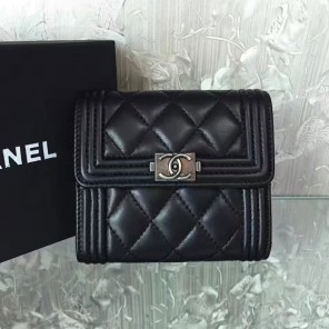 2017 Boy Chanel Matelasse Tri-Fold Wallet Original Lambskin Leather A92115 Black