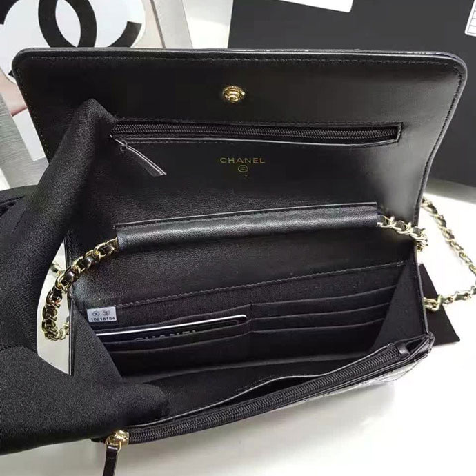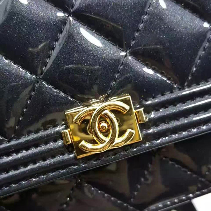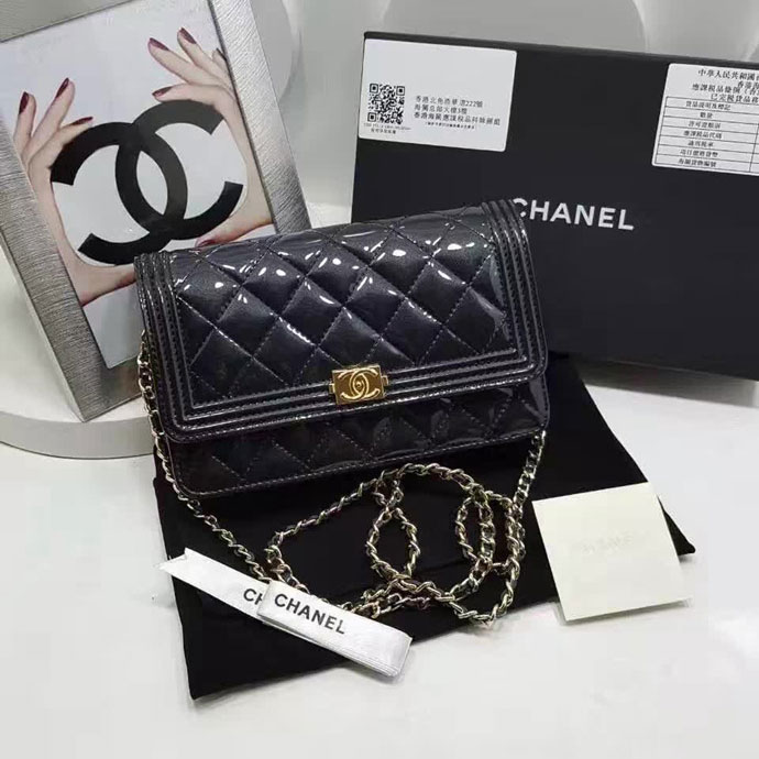 2017 Boy Chanel WOC mini Flap Bag Black Original Patent leather A80287
