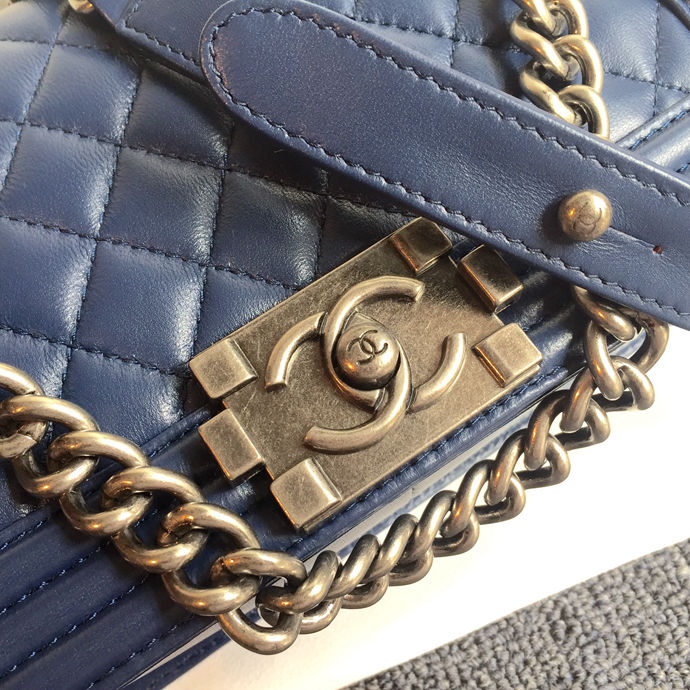 2017 Chanel Boy Flap Shoulder Bag Lambskin Leather A67086 Blue