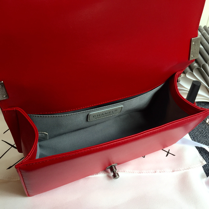 2017 Chanel Boy Flap Shoulder Bag Lambskin Leather A67086 Red