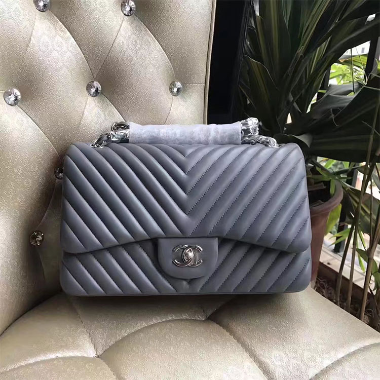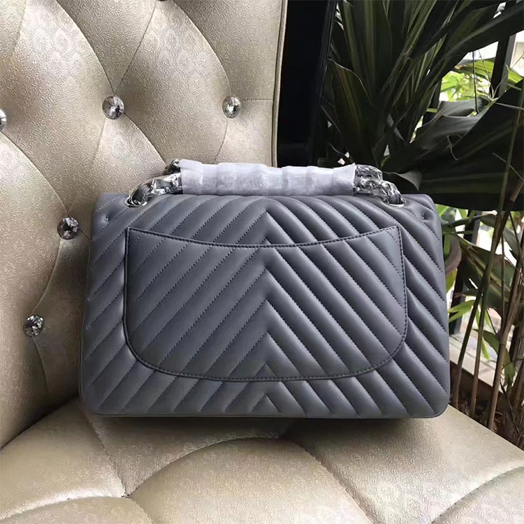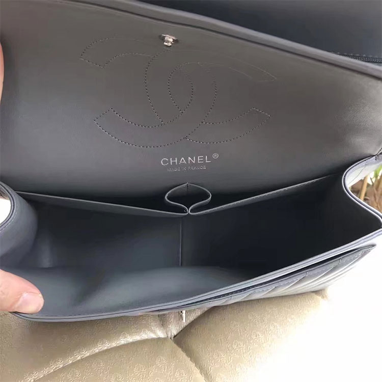 2017 Chanel Classic Flap Bag 1113 Grey Original Sheekskin leather Silver Hardware