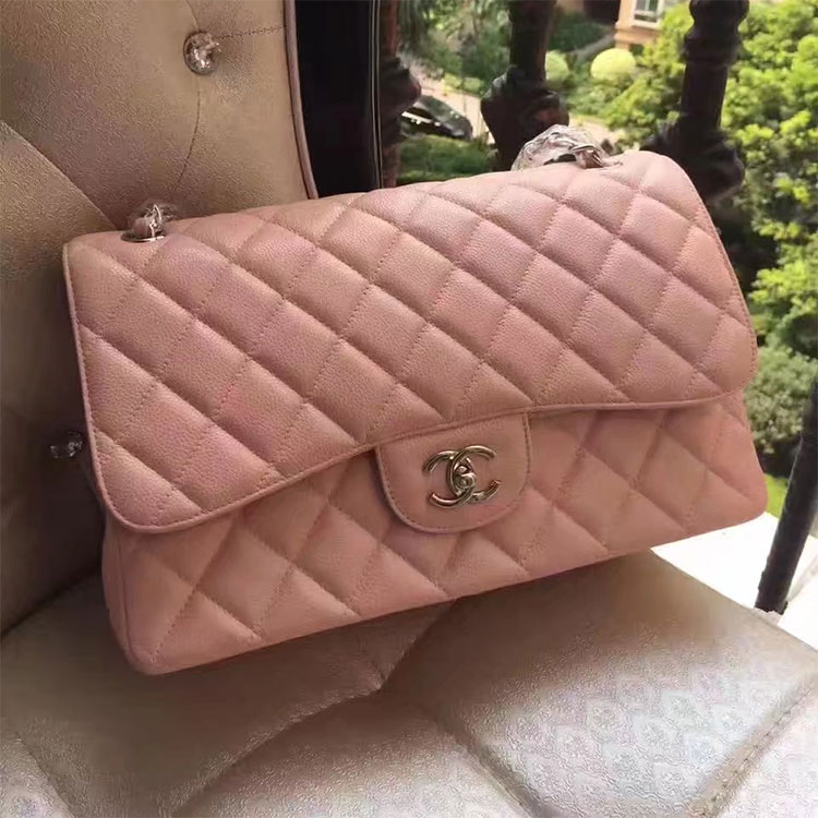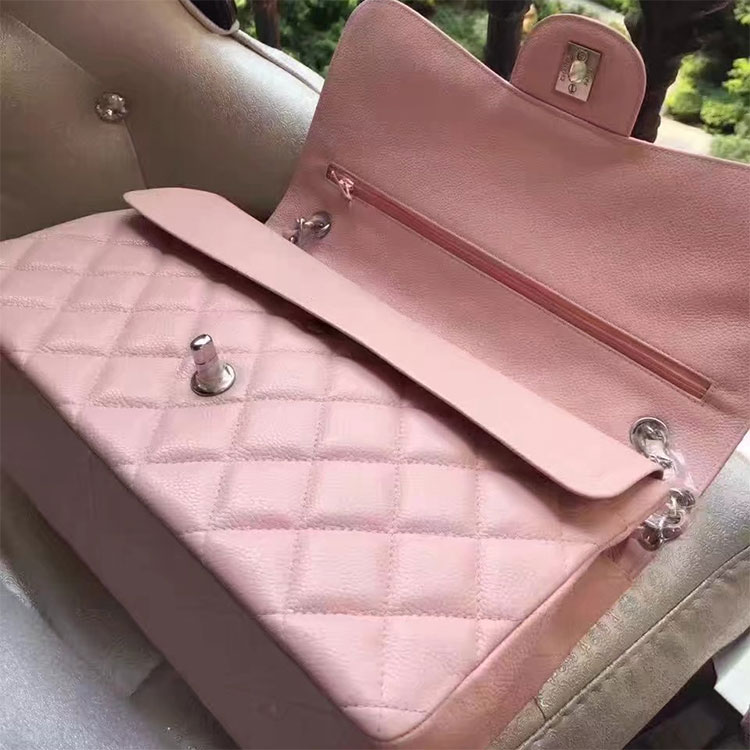 2017 Chanel Classic Flap Bag 1113 Pink Original Caviar leather Silver Hardware