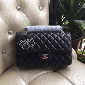 2017 Chanel Classic Flap Bag Black Original Sheepskin Leather 1112 Silver hardware