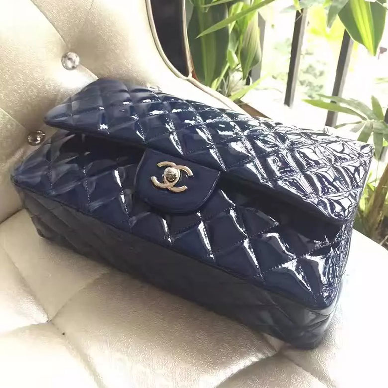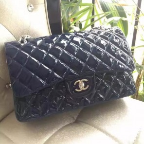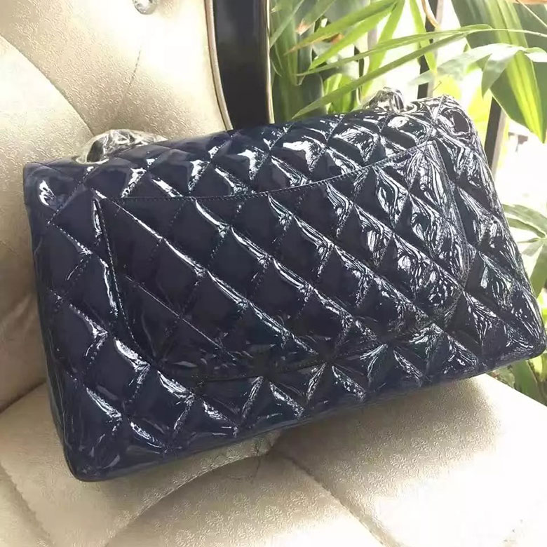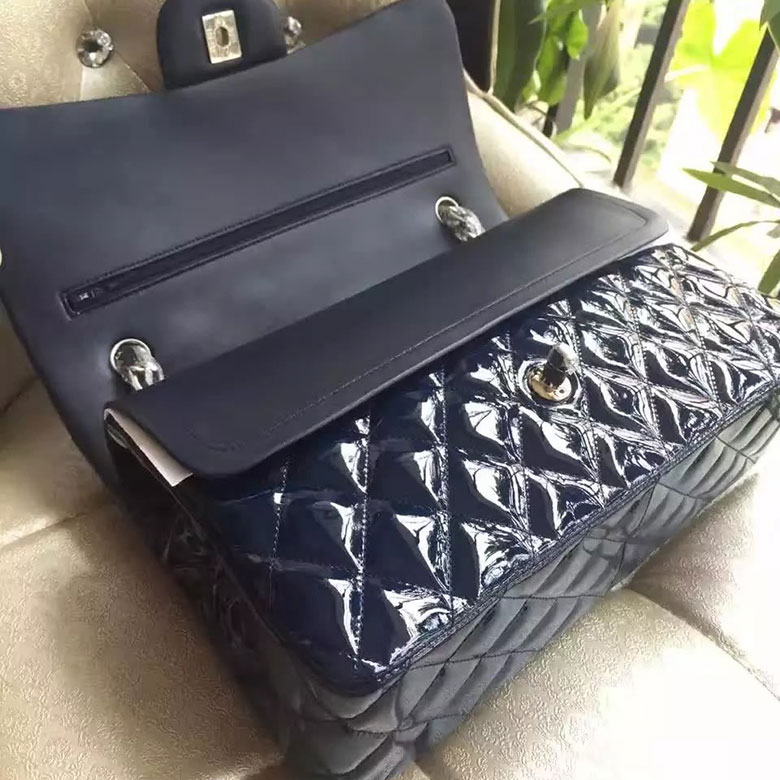 2017 Chanel Classic Flap Bag Original Blue Patent Leather 1113 Silver hardware