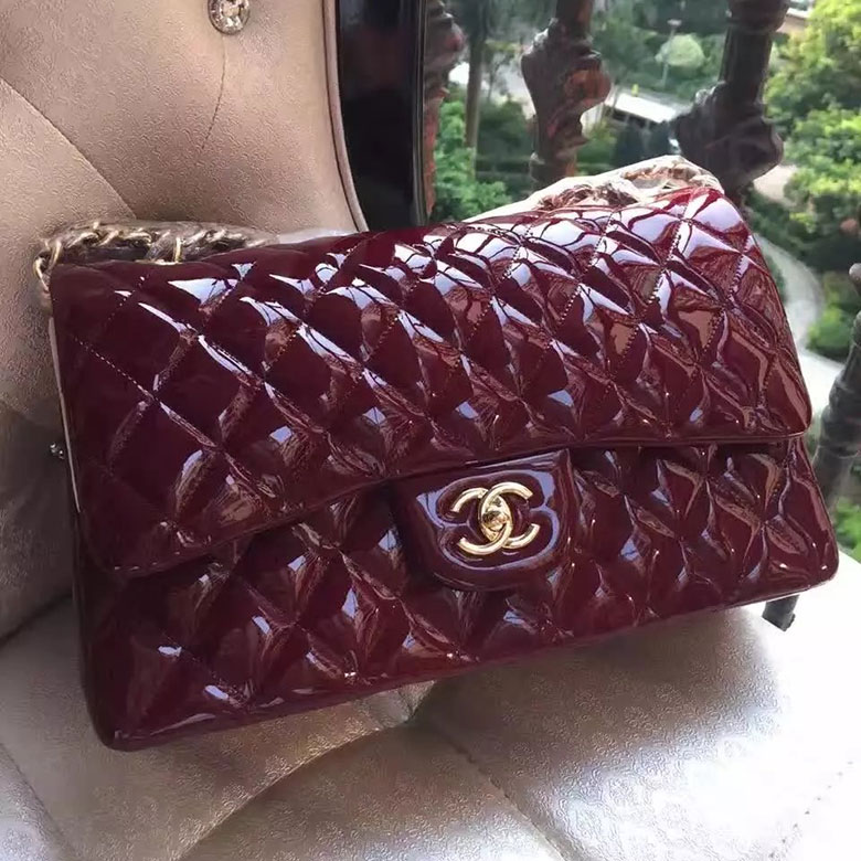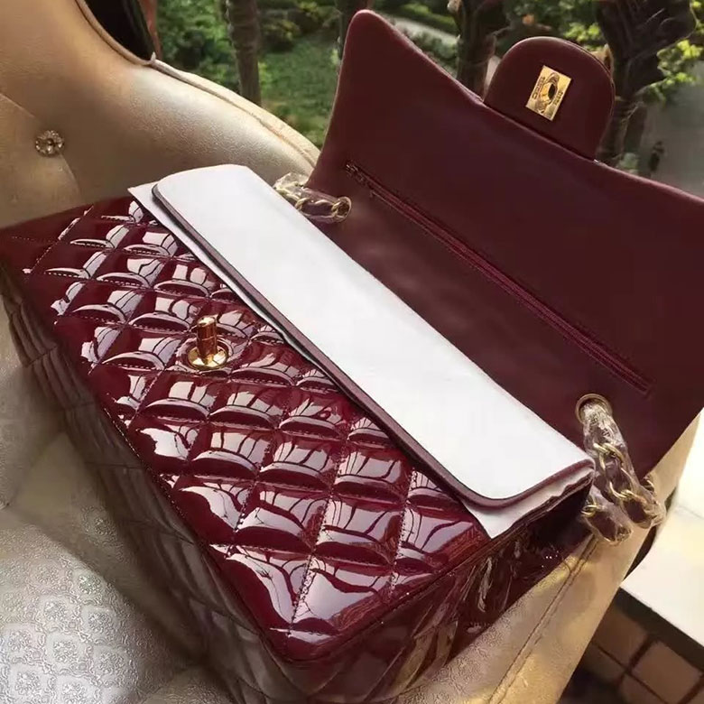 2017 Chanel Classic Flap Bag Original Burgundy Patent Leather 1113 Gold hardware