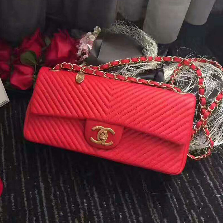 2017 Chanel Classic Flap Bag Red Original Leather 1112 Gold hardware