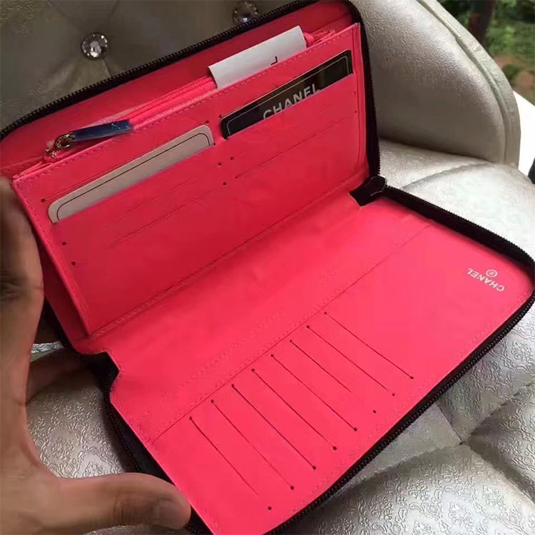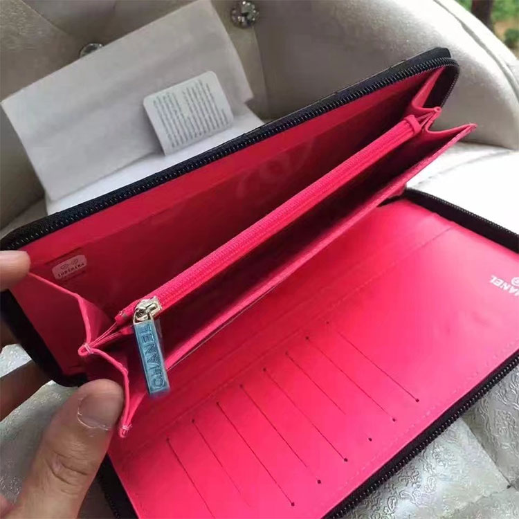 2017 Chanel Combon Zip Around Wallet Original Calfskin leather A48660 Black