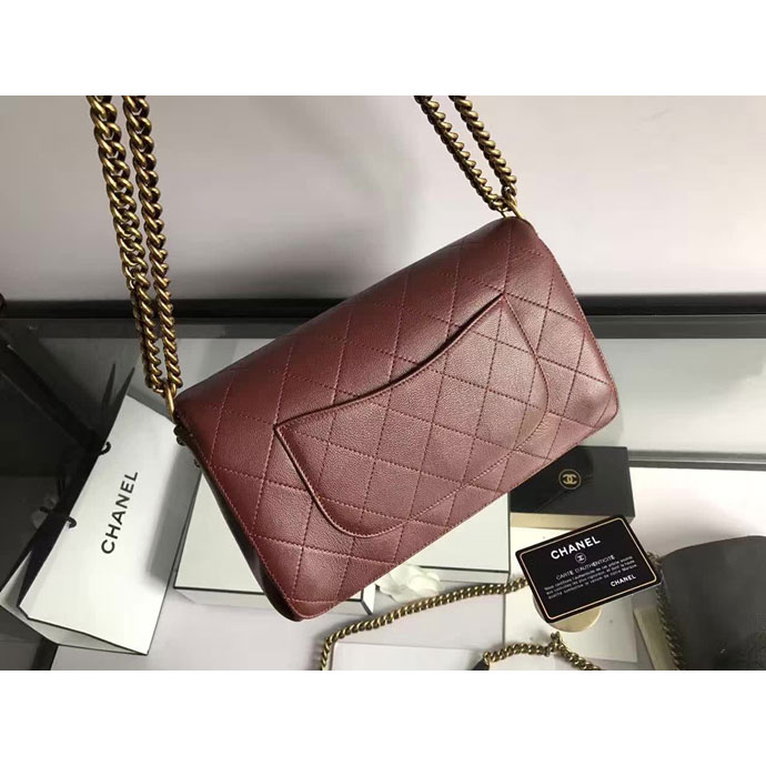 2017 Chanel Flap Bag Original Deer Leather A98166 Burgundy