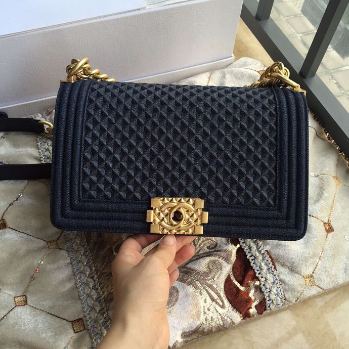2017 Chanel LE Boy Flap Shoulder Bag Original denim A92495 Black