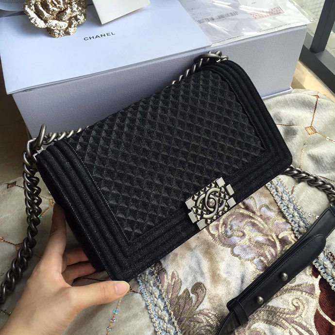 2017 Chanel LE Boy Flap Shoulder Bag Original denim A92495 Black