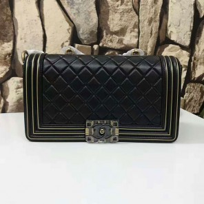 2017 Chanel LeBoy Flap Shoulder Bag Black Original Sheepskin leather A29508