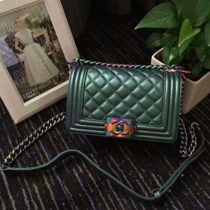 2017 Chanel LeBoy Flap Shoulder Bag Original Goat leather A67085 Green