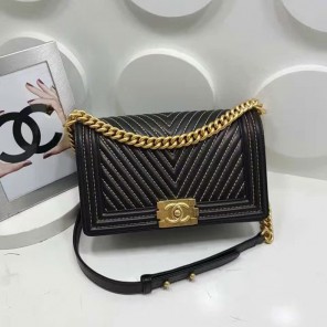 2017 Chanel Le Boy Flap Shoulder Bag A92493 Black with Gold hardware