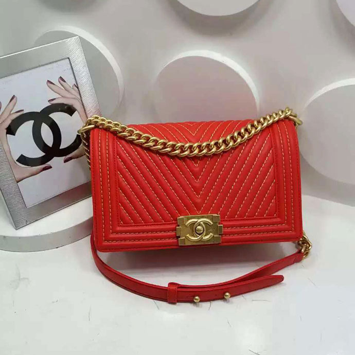 2017 Chanel Le Boy Flap Shoulder Bag A92493 Red with Gold hardware