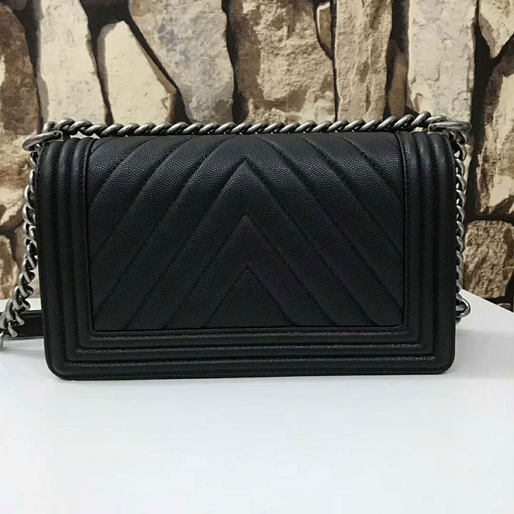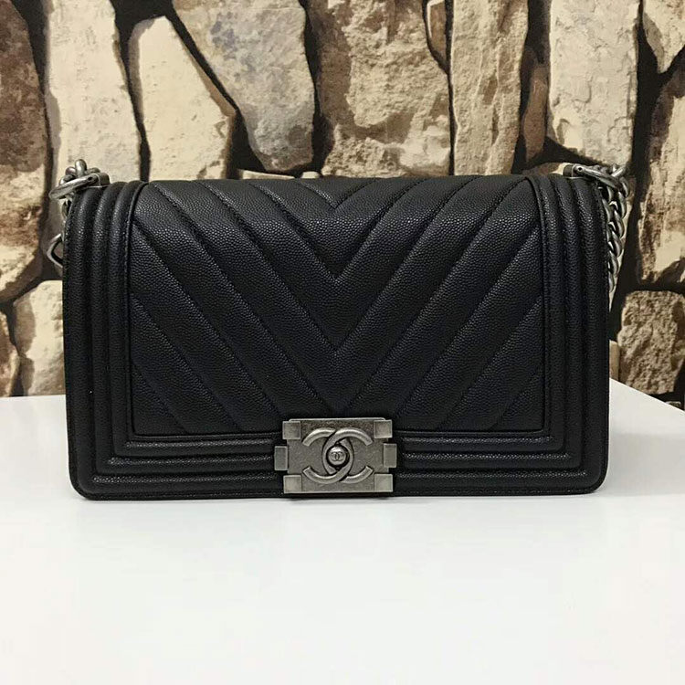 2017 Chanel Le Boy Flap Shoulder Bag Black Original Caviar Leather A67086