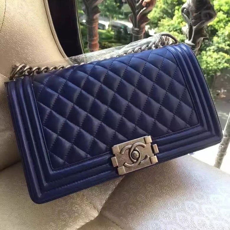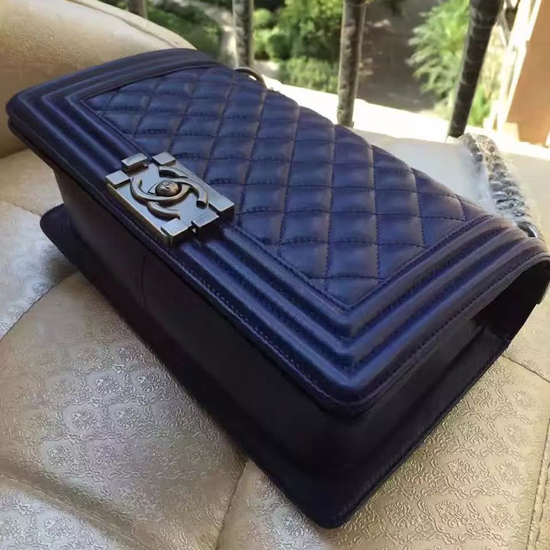 2017 Chanel Le Boy Flap Shoulder Bag Blue Original Lambskin Leather A67086