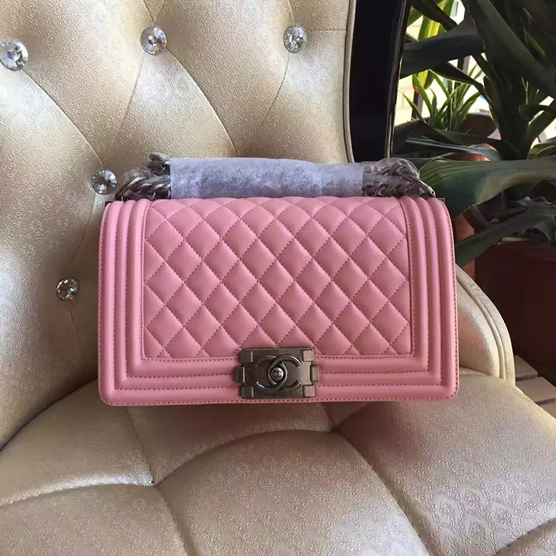 2017 Chanel Le Boy Flap Shoulder Bag Pink Original Lambskin Leather A67086