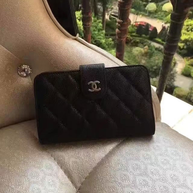 2017 Chanel Matelasse Bi-Fold Wallet Black Original Caviar A48667 Silver