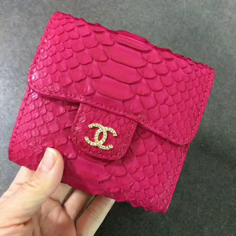 2017 Chanel Matelasse Tri-Fold Wallet Original python Leather A82288