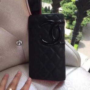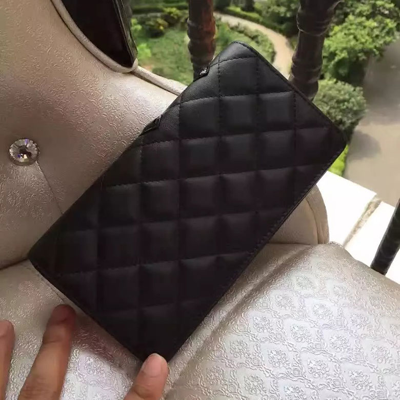 2017 Chanel Original Calfskin Leather Black CC Logo Bi-Fold Wallet A26717 Black