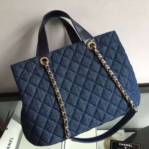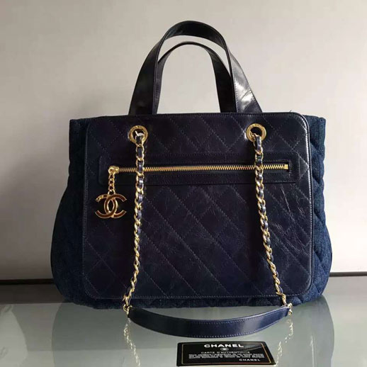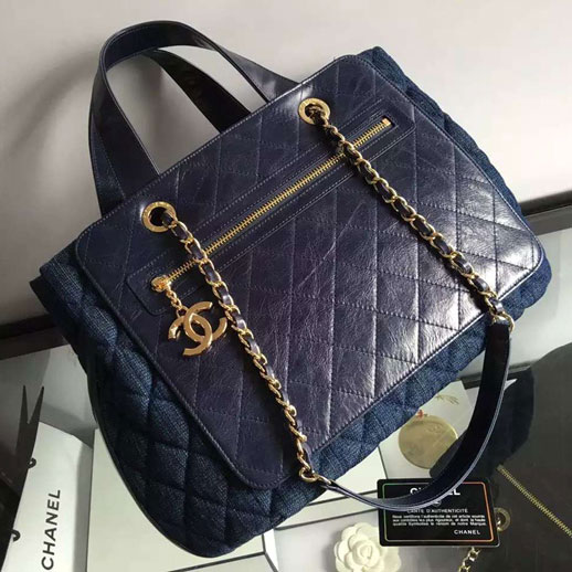 2017 Chanel Shoulder Tote Bag Original Iridescent Leather and denim A98150 Blue