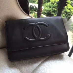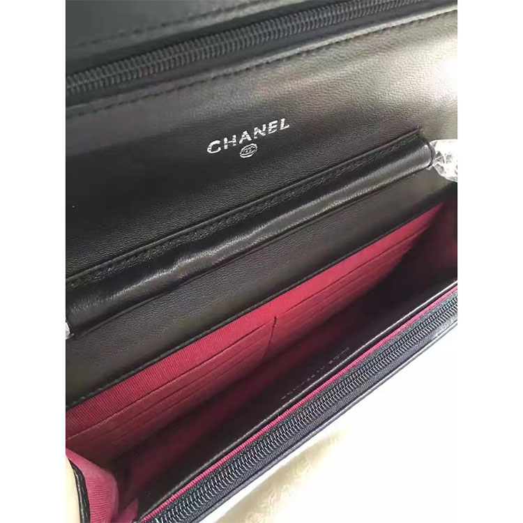 2017 Chanel WOC A33814 Black Original Lambskin Leather Mini Flap Bag Silver