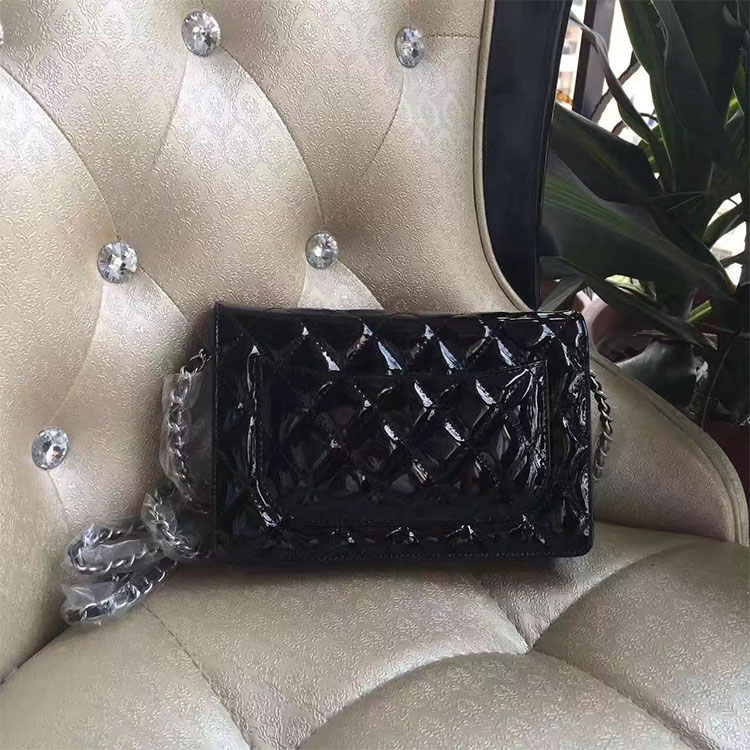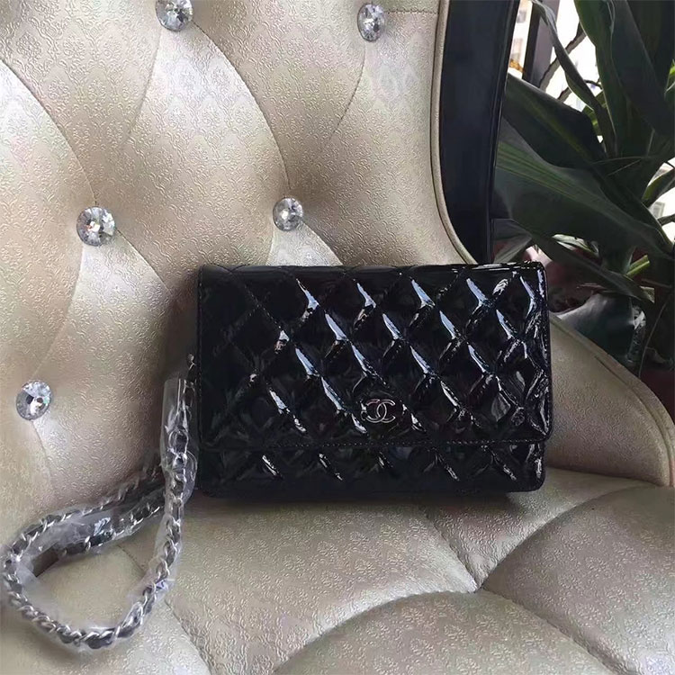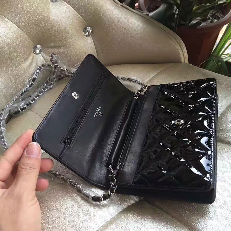 2017 Chanel WOC A33815 Black Original Patent Leather Flap Shoulder Bags Silver