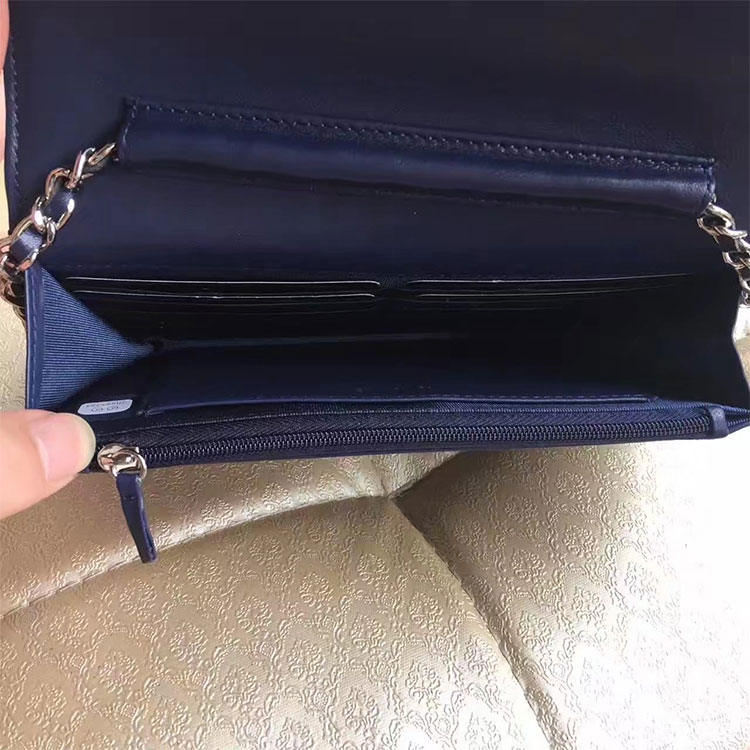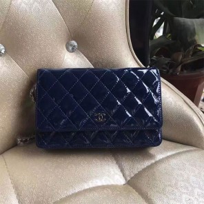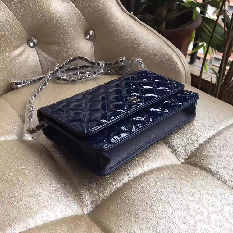 2017 Chanel WOC A33815 Blue Original Patent Leather Flap Shoulder Bags Silver