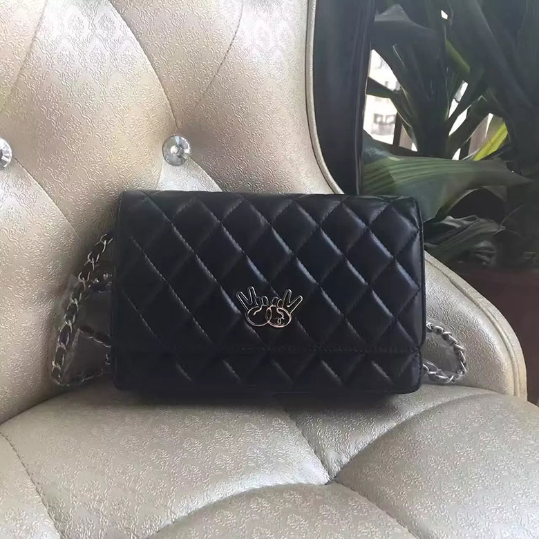 2017 Chanel WOC A81127 Black Original Sheepskin Leather Flap Shoulder Bags Silver