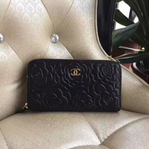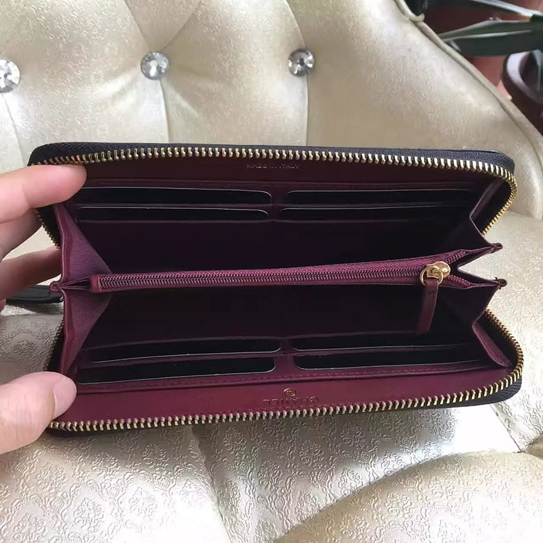 2017 Chanel Zip Around Wallet Black Original Sheepskin leather A50085 Gold hardware