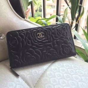 2017 Chanel Zip Around Wallet Black Original Sheepskin leather A50085 Silver hardware
