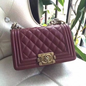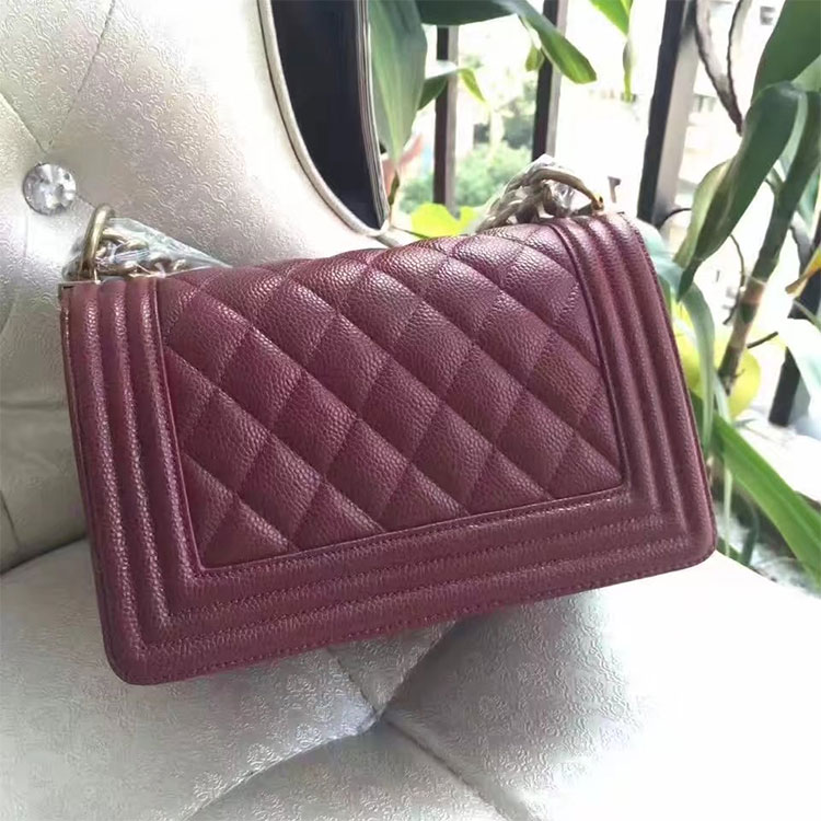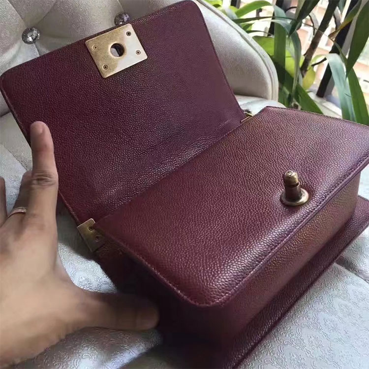 2017 Le Boy Chanel Flap Shoulder Bag Original Caviar Leather A67085 Claret