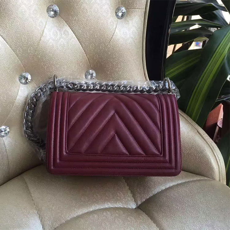 2017 Le Boy Chanel Flap Shoulder Bag Original Lambskin Leather A67085 Claret