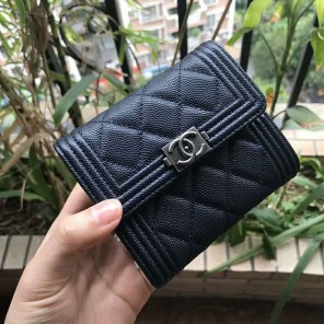 2018 Boy Chanel Matelasse Tri-Fold Wallet Original Calfskin Leather