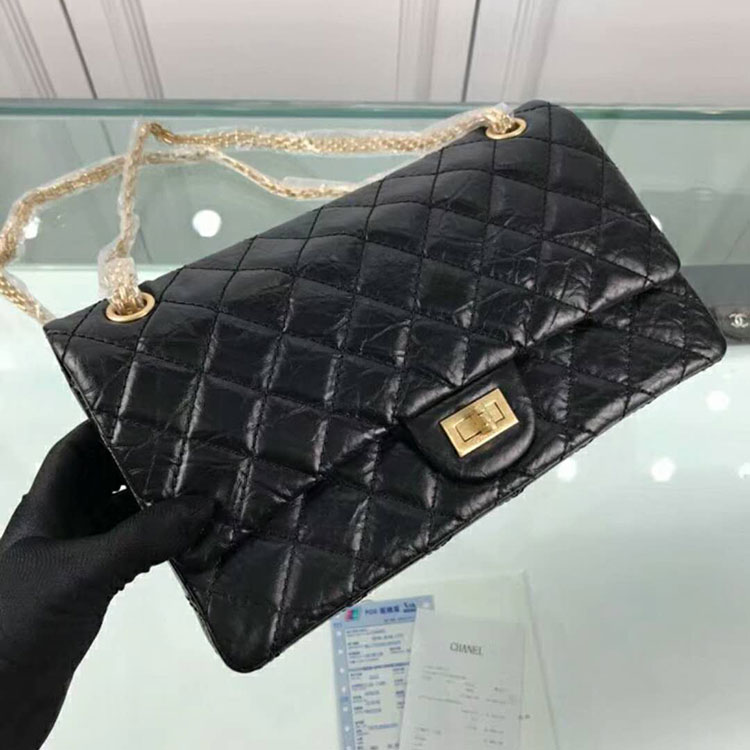 2018 Chanel Classic Flap Bag Original Glazed Crackled Leather