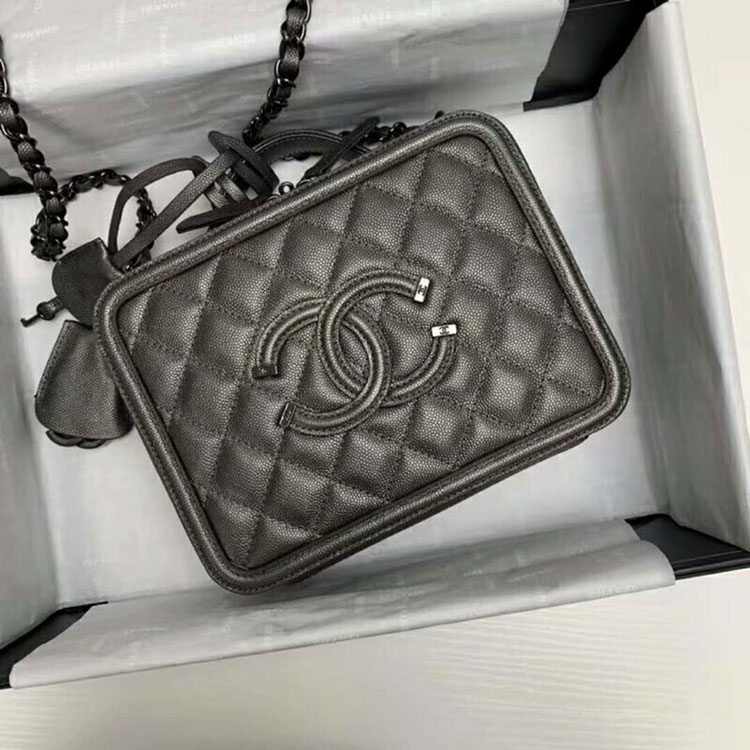 Chanel Vanity Case Come with serial numbers, chanel box, Chanel authenticity card, Chanel dust bag and Chanel care booklet.