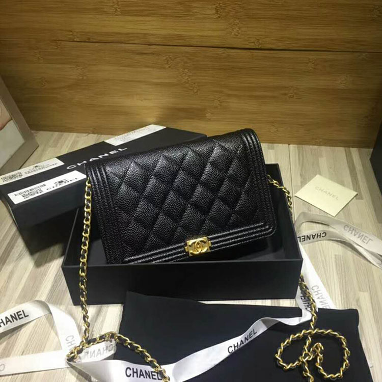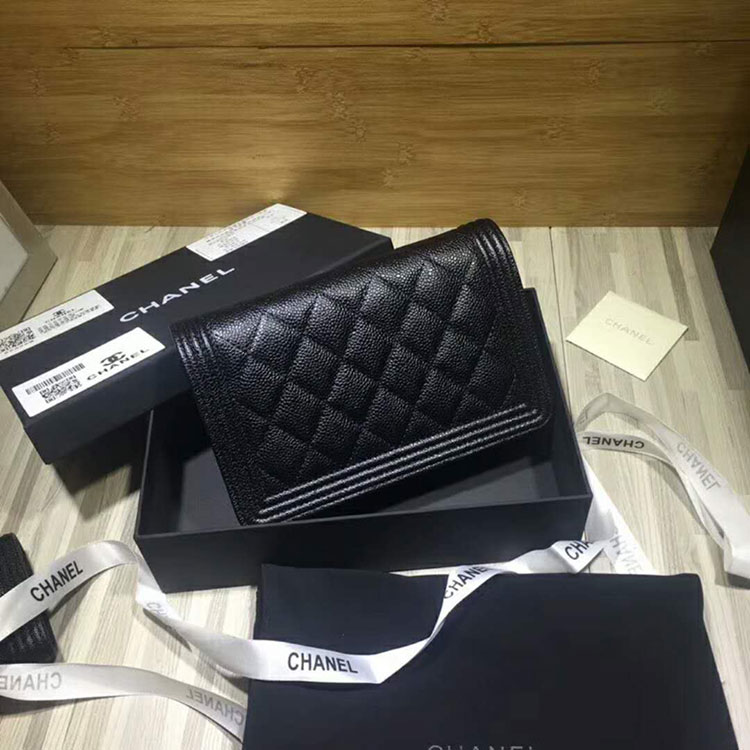 Le Boy Chanel WOC Mini Flap Bag Come with serial numbers, Chanel authenticity card, Chanel dust bag, Chanel Box and Chanel care booklet.