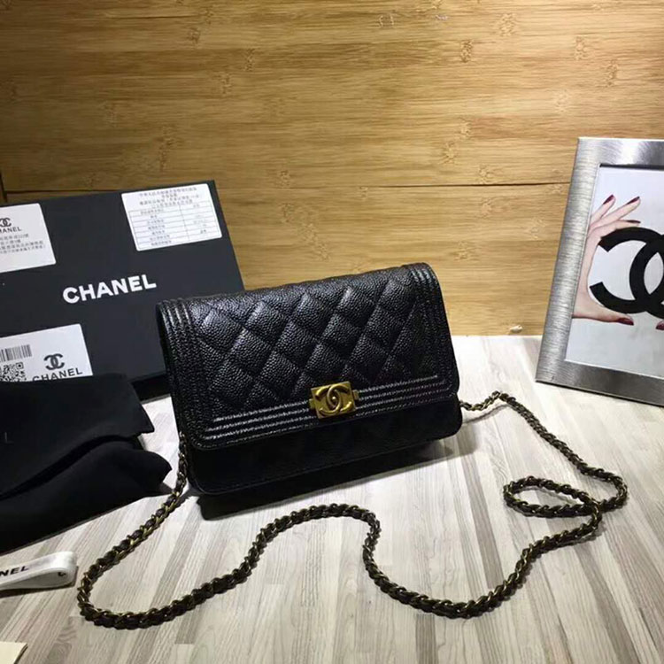Le Boy Chanel WOC Mini Flap Bag Come with serial numbers, Chanel authenticity card, Chanel dust bag, Chanel Box and Chanel care booklet.
