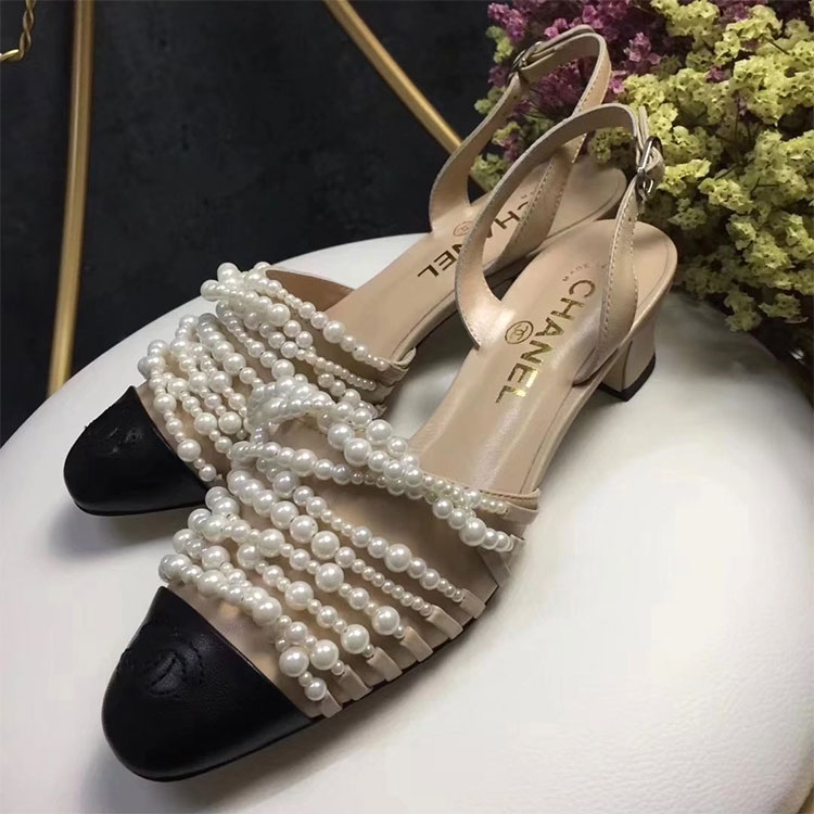 2018 chanle women shoes in Lambskin leather with pearl Heel 5cm