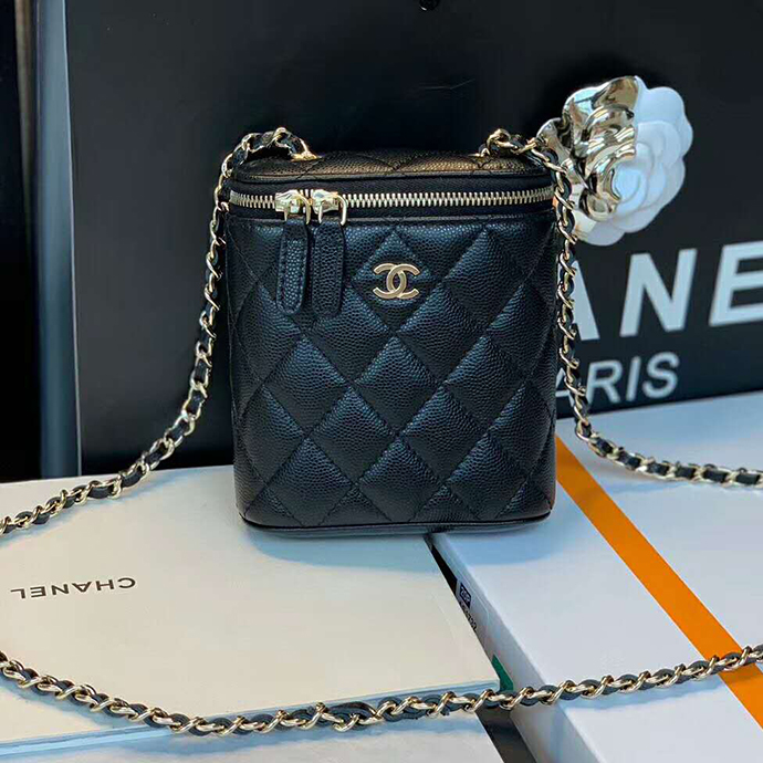 Chanel mini vanity with classic chain Come with serial numbers, chanel box, Chanel authenticity card, Chanel dust bag and Chanel care booklet.
