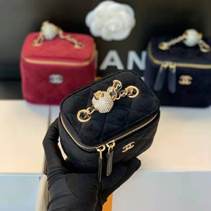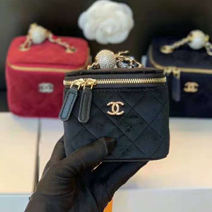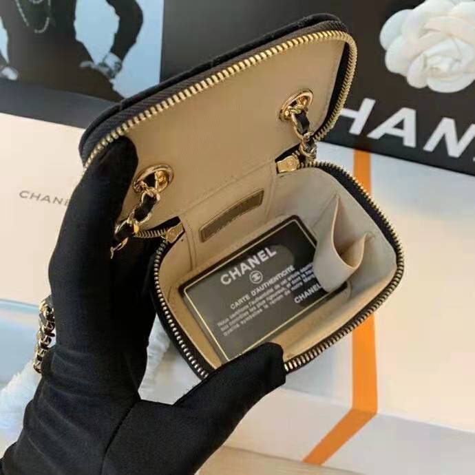 Chanel mini vanity with classic chain Come with serial numbers, chanel box, Chanel authenticity card, Chanel dust bag and Chanel care booklet.