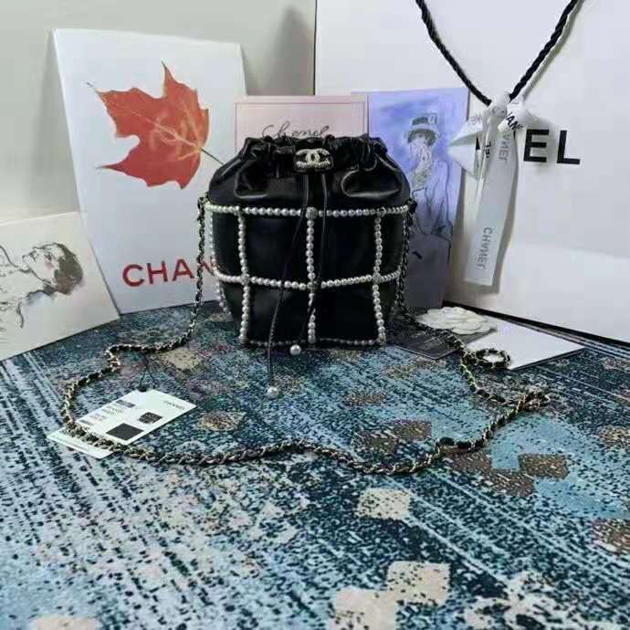 Chanel drawstring bag Come with serial numbers, Chanel box, Chanel authenticity card, Chanel dust bag, Chanel care booklet.