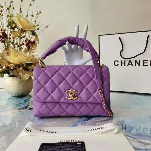 Chanel flap bag with top handle Come with serial numbers, Chanel authenticity card, Chanel dust bag, Chanel Box and Chanel care booklet.