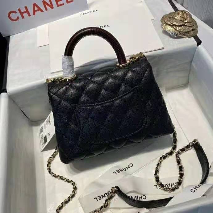 Chanel mini flap bag with top handle Come with serial numbers, Chanel authenticity card, Chanel dust bag, Chanel Box and Chanel care booklet.